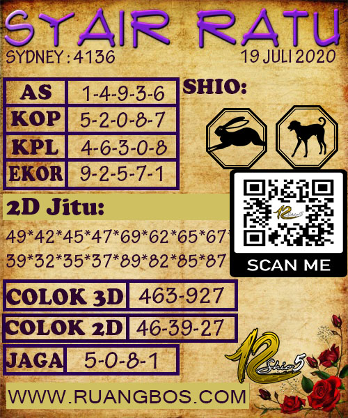 DATA SDY - PREDIKSI SDY - SYAIR SDY. Terkadang melihat Prediksi SDY 3 september 2022 Dan Syair SDY 3 september 2022. Peminat Syair sdy dan prediksi tentang togel Sydney akhir-akhir ini sangatlah populer. Prediksi Kakek tua sydney, syair totogelo, Naga mas atau syair naga mas yang saat ini sedang vakum terbukti menjadi konsumi publik. Semua gambar kode syair sidney akan lengkap sepenuh nya paling lambat jam 12.00 wib . Jangan Lupa Kunjungi Juga FORUM KODE SYAIR HK Berikut ini Kumpulan Kode syair yang ada di forum syair sydney pada wap Yang biasa di cari oleh para pengemar Forum Kode syair sdy Syair penuh komplit sebelum jam tutup pasaran sydney ya bro.